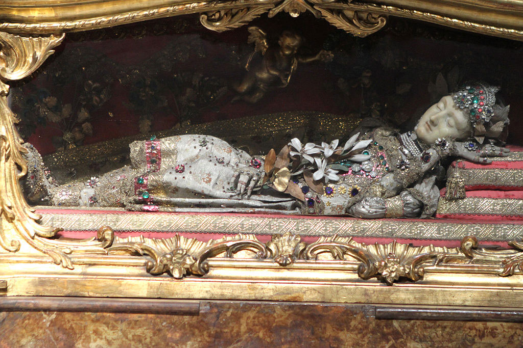 Saint Hilaria and her daughter, Saint Afra, hid their bishop from harm during the Diocletian persecutions. In turn, their bishop converted them. Saint Afra was martyred because she refused to sacrifice to pagan gods. After her daughter was martyred, Hilaria and her friends went to bury her daughter's remains. However, Hilaria and her friends were captured by authorities, and were also commanded to sacrifice to pagan gods. All the women refused and were subsequently martyred.