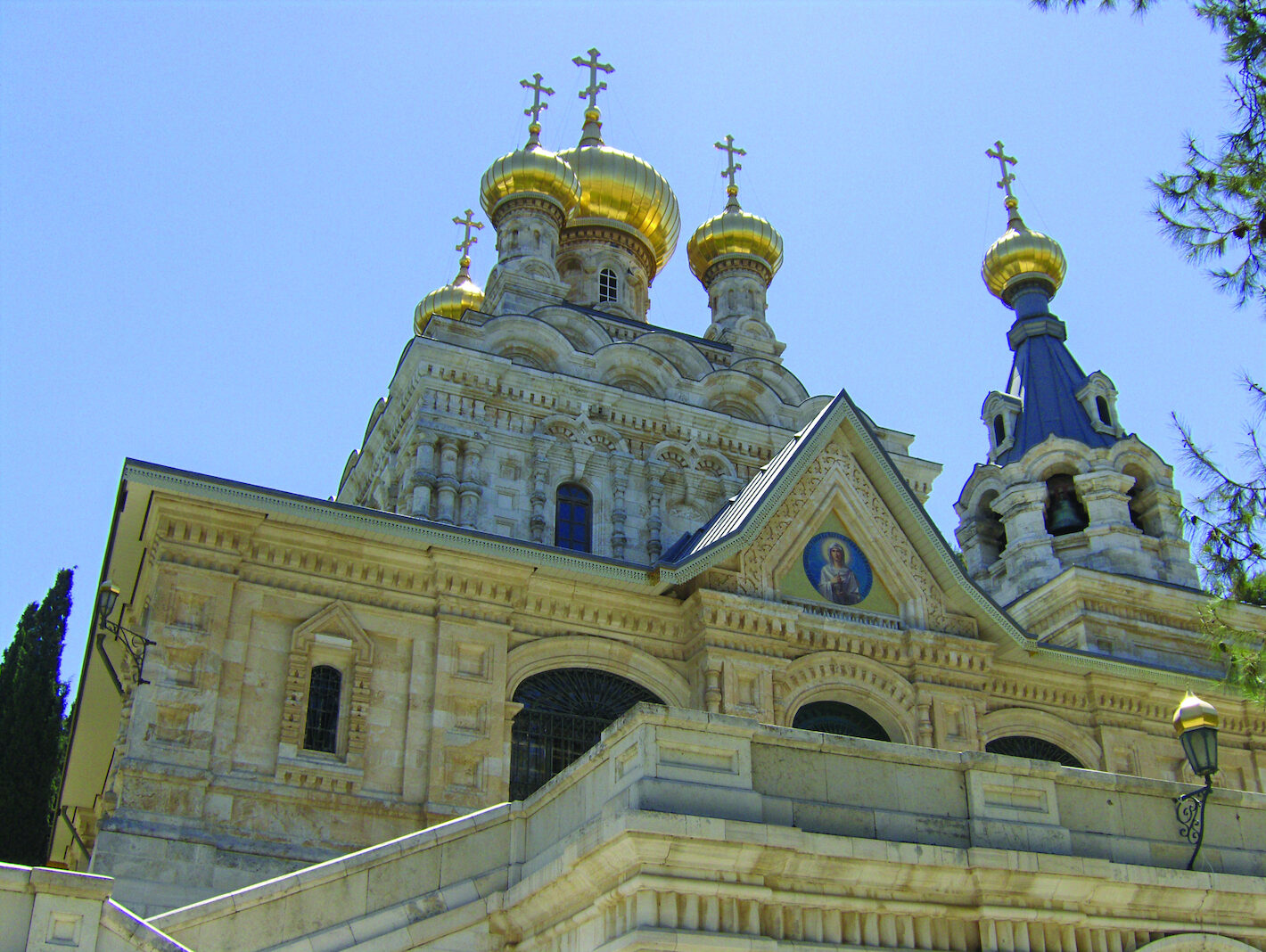 This is a Russian Orthodox Church located on the Mount of Olives, near the Garden of Gethsemane in Jerusalem, Israel. It was named after Mary Magdalene and built in 1886 by a Russian czar.