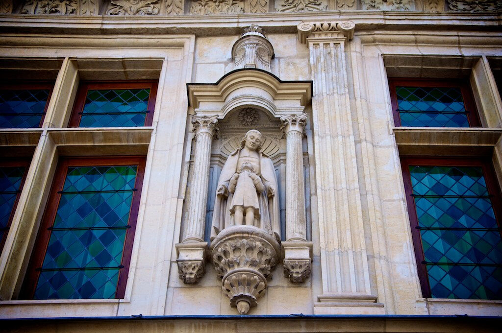 A statue of Saint John Baptist de La Salle on his childhood home in Reims, France.