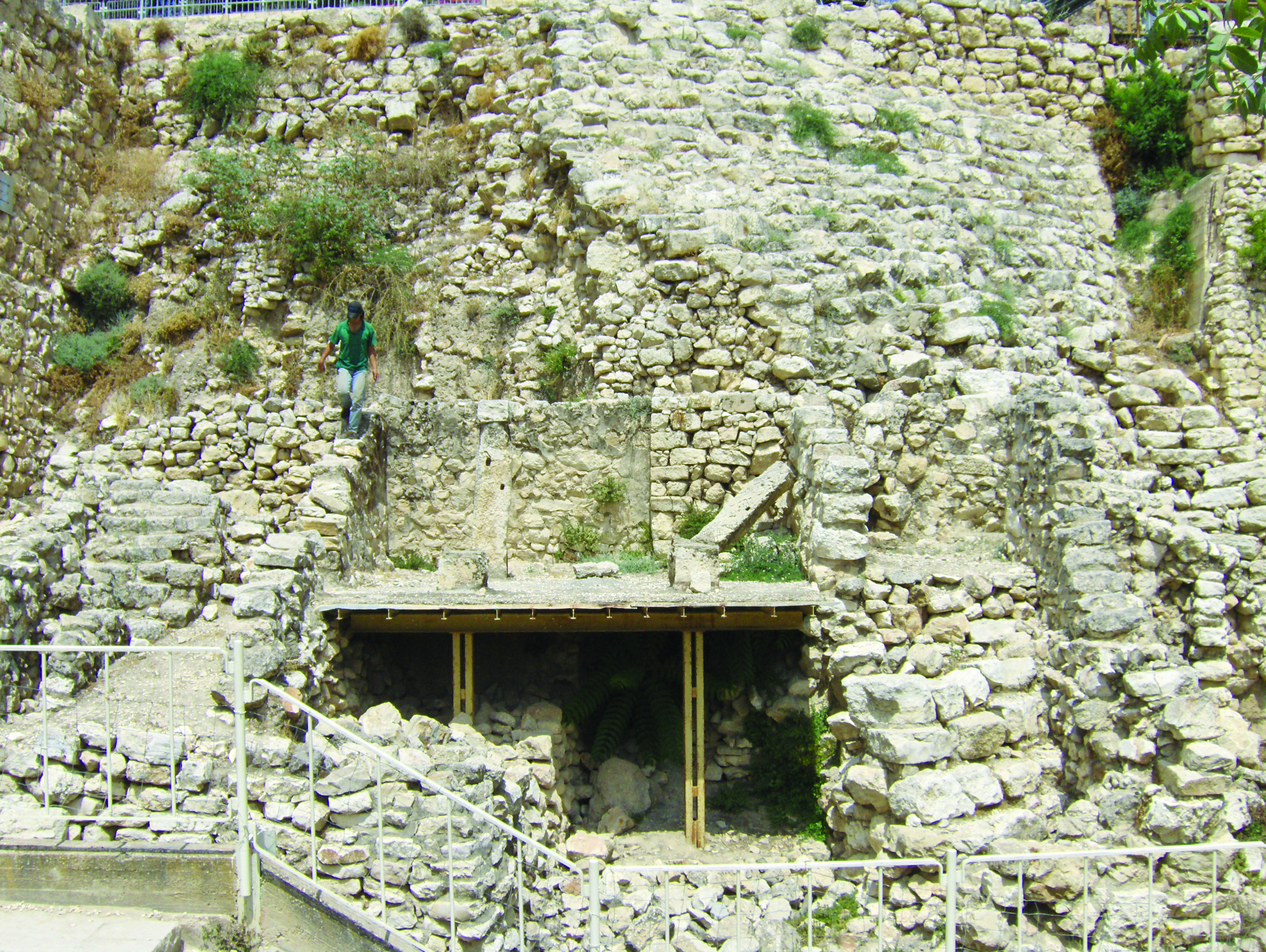 "This massive stone structure was discovered in recent excavations of the City of David. Built around the 10th century BCE, it is believed to be a public building that existed during the time of the united kingdom of David and Solomon."