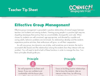 A sample lesson of the Life Issues from Connect: Bringing Faith to Life parish faith formation program.
