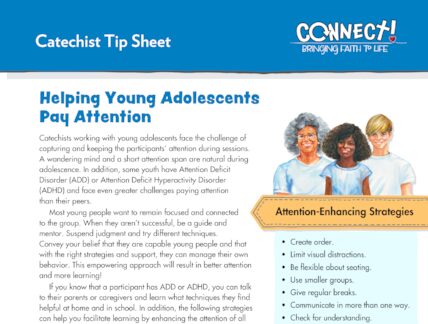Catechists working with young adolescents face the challenge of capturing and keeping their students’ attention during sessions. A wandering mind and a short attention span is natural during adolescence. In addition, some students have Attention Deficit Disorder (ADD) or Attention …