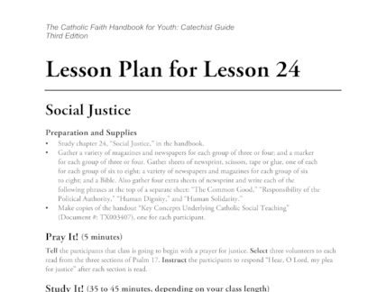 A lesson plan for lesson 24 in The Catholic Faith Handbook for Youth: Catechist Guide.